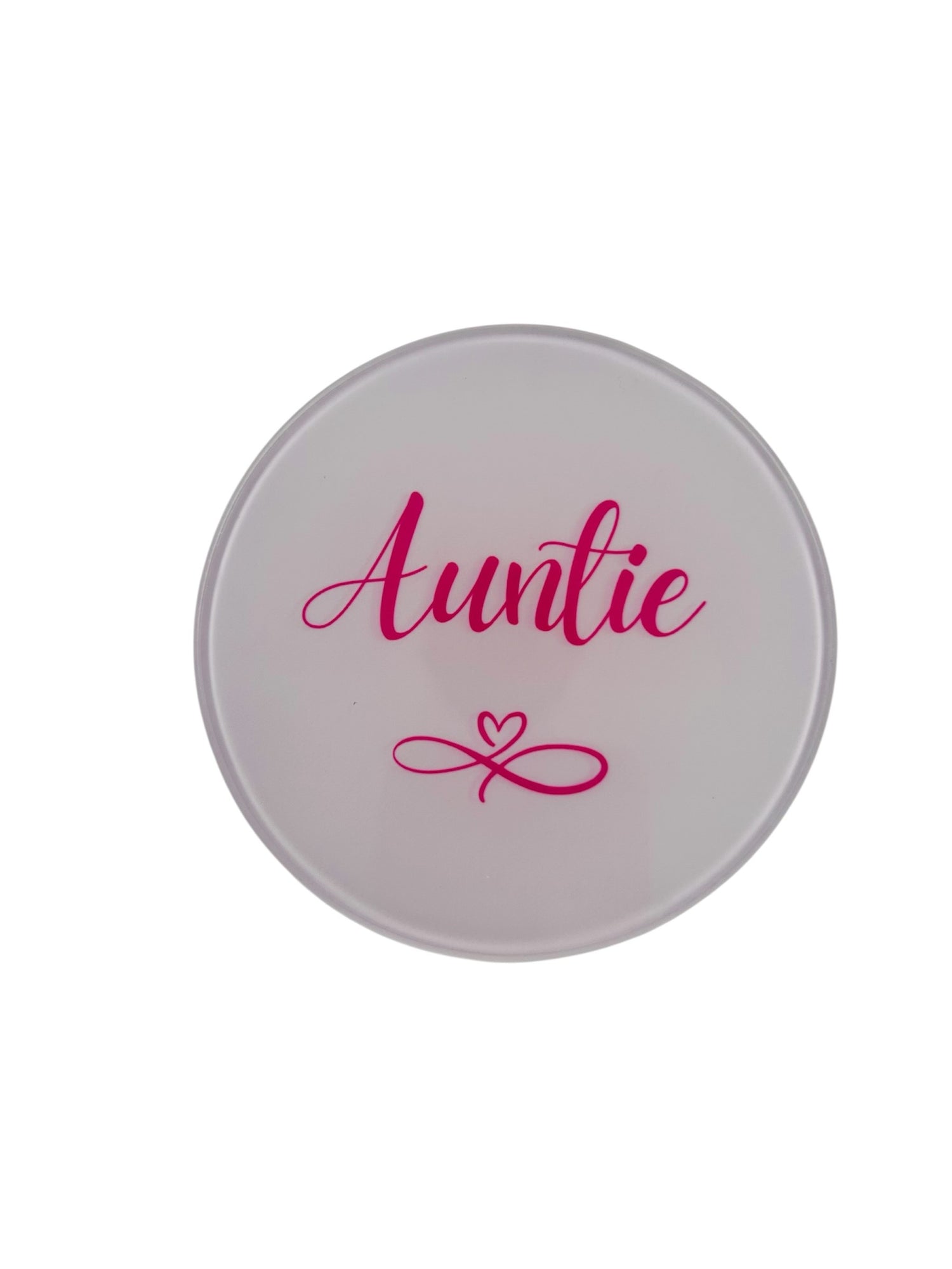 - Woodside Home Living - Auntie Heart Round Glass Coaster