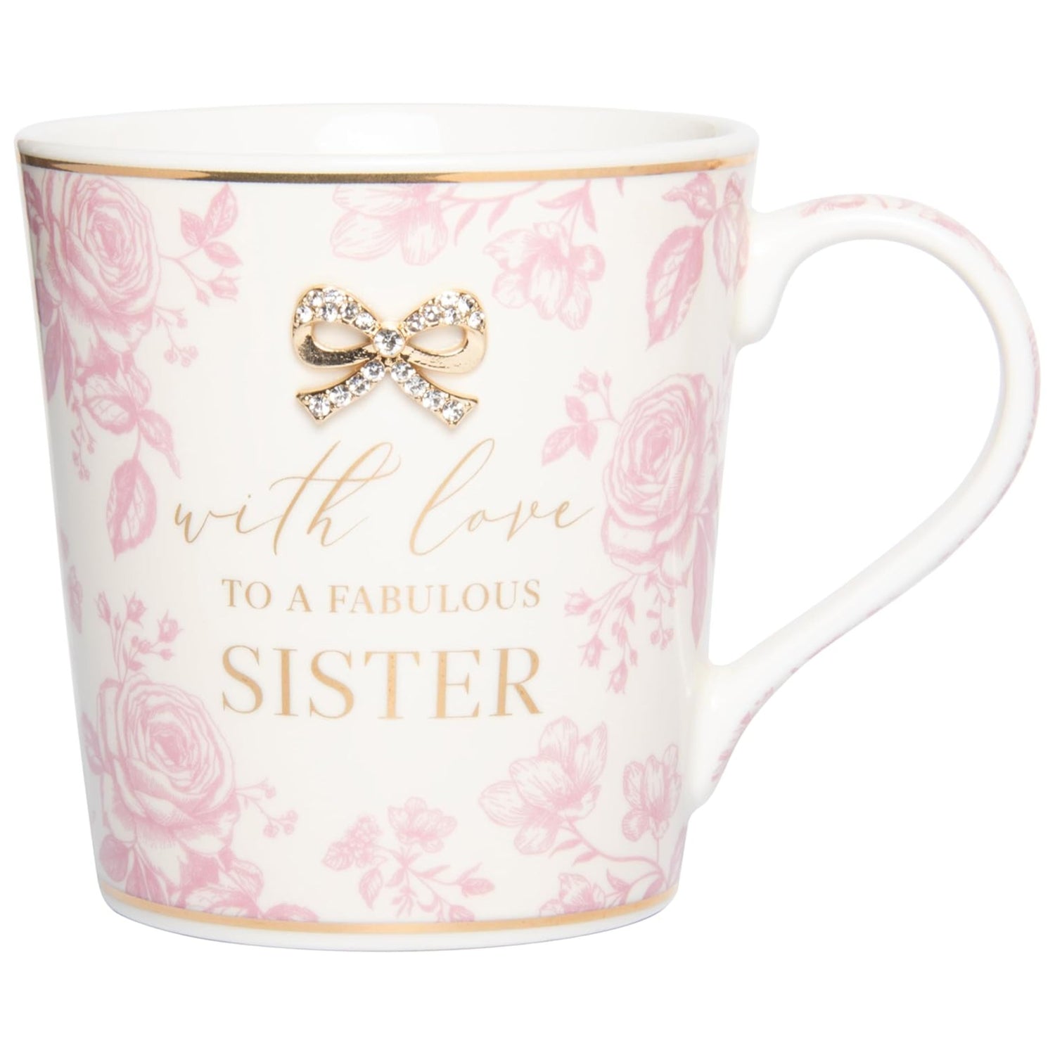 Crafted from durable fine Fine China, this gorgeous mug collection is decorated with a classic and elegant pink floral pattern set on a crisp white background and finished with with an encrusted bow embellishment.