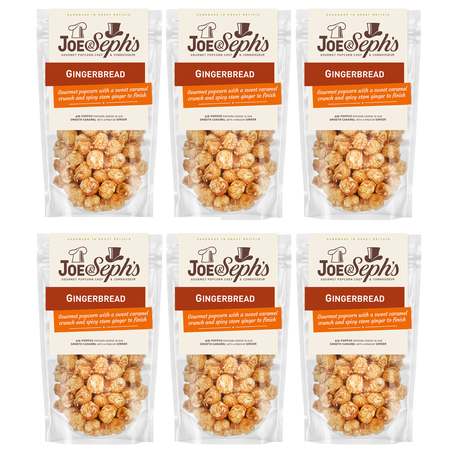 Warm, spicy, and irresistibly moreish, Joe & Seph’s Gingerbread Gourmet Popcorn captures the cosy flavours of golden gingerbread in every bite. Handmade in small batches, each 30g pack delivers buttery caramel notes balanced with aromatic spice, perfect for winter gifting, stocking fillers, and premium snacking.