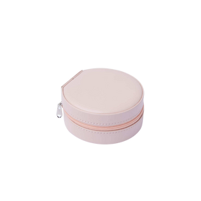 Indulge in the luxurious elegance of Krystina's Collection with this round  mini jewellery box. Crafted with high-quality materials, it features a convenient zip closure for safekeeping of your cherished accessories. Organize and transport your valuables with ease, all while adding a touch of charm to your dressing table.