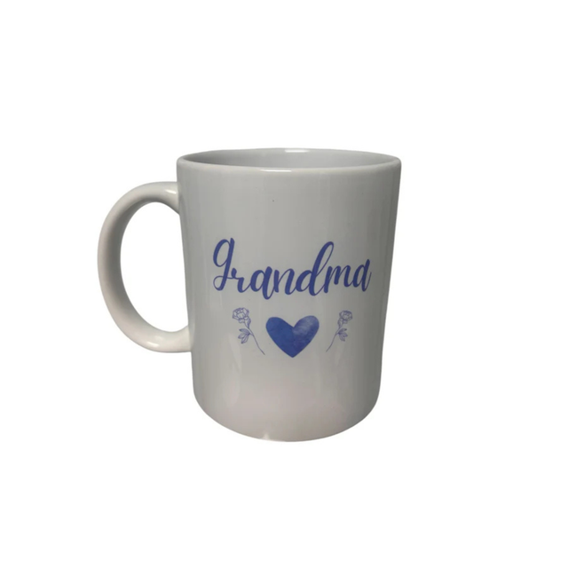 Personalised White Ceramic Mug (Heart & Flowers) - Red is backordered and will ship as soon as it is back in stock.