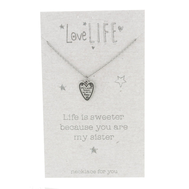 Celebrations Love Life Sentiment Necklace - My Sister is backordered and will ship as soon as it is back in stock.