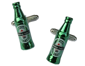 Lager bottle cufflinks fun green coloured beer bottle for lager and beer drinkers alike.