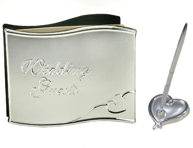 Silver Plated Luxury Wedding Guest Book & Pen Set